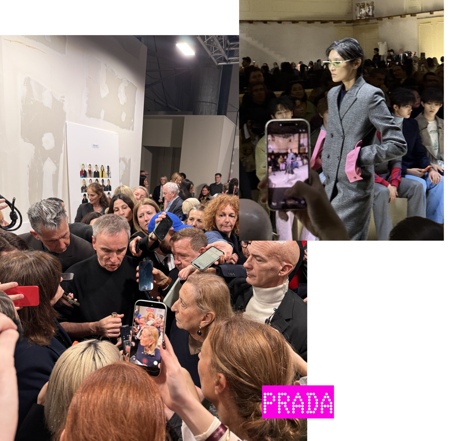 I arrived at Prada obscenely early, which meant I had time to reflect on my life and my sleep deprivation. The Deposito at Fondazione Prada was layered with centuries-old objects like antique mirrors, paintings, consoles. A space that felt like a dream partially dismantled. The usual pre-show hum started. Carrie Mulligan. Sarah Pidgeon. Editors craning. Then the room shifted when Mark Zuckerberg and Priscilla Chan walked in. Unexpected. Intriguing.