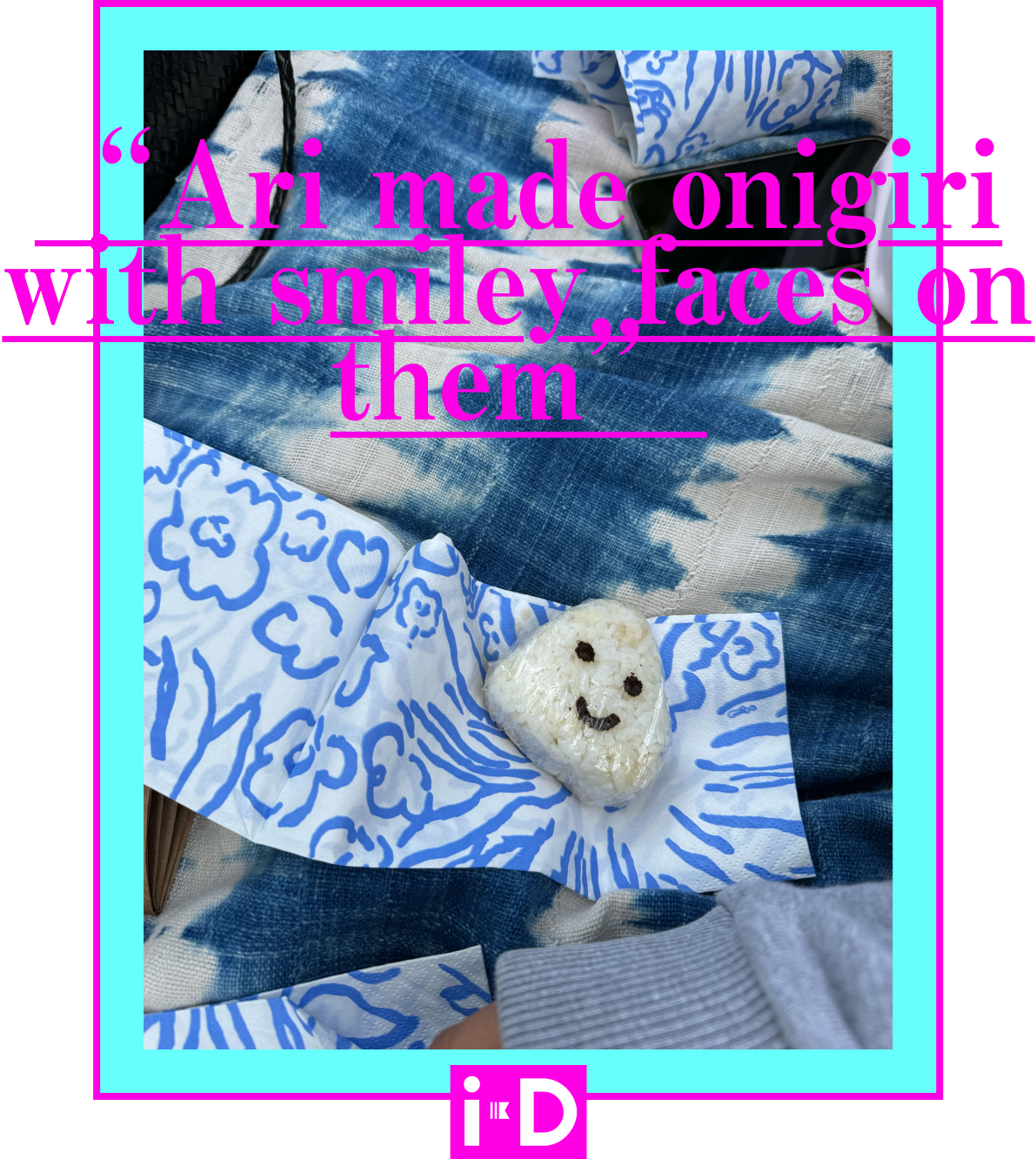 So, this past Saturday, we met in Central Park and went to a Chihuahua meet-up. Ari made onigiri with smiley faces on them. As I lay in the grass, Ari filled me in on the past six months of her life. A Chihuahua in a tulle miniskirt ran around peeing on unattended purses. Since the piece came out, she got into her dream school (F.I.T.) and was living in Brooklyn with two roommates, interning wherever she could, like backstage at Fashion Week for Thom Browne, and working at Sweetgreen. She likes Sweetgreen because they give her one meal a shift and the chopping allows her room to think.