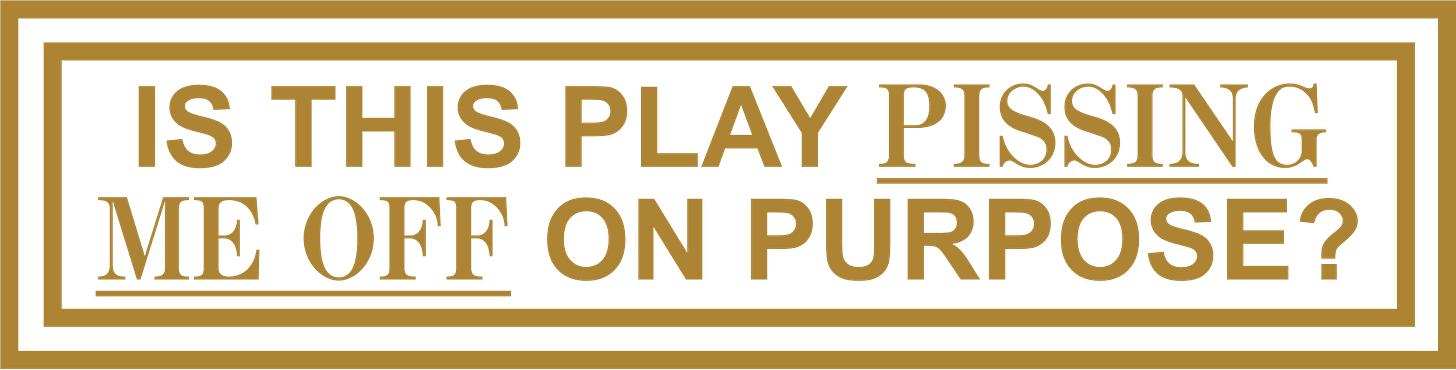 Look, we watch movies that are longer than that all the time, but the contract of theater plays with your attention span differently. Sometimes, even when you’re enjoying something, you find yourself gasping for the interval so you can debrief and break the tension in the room.