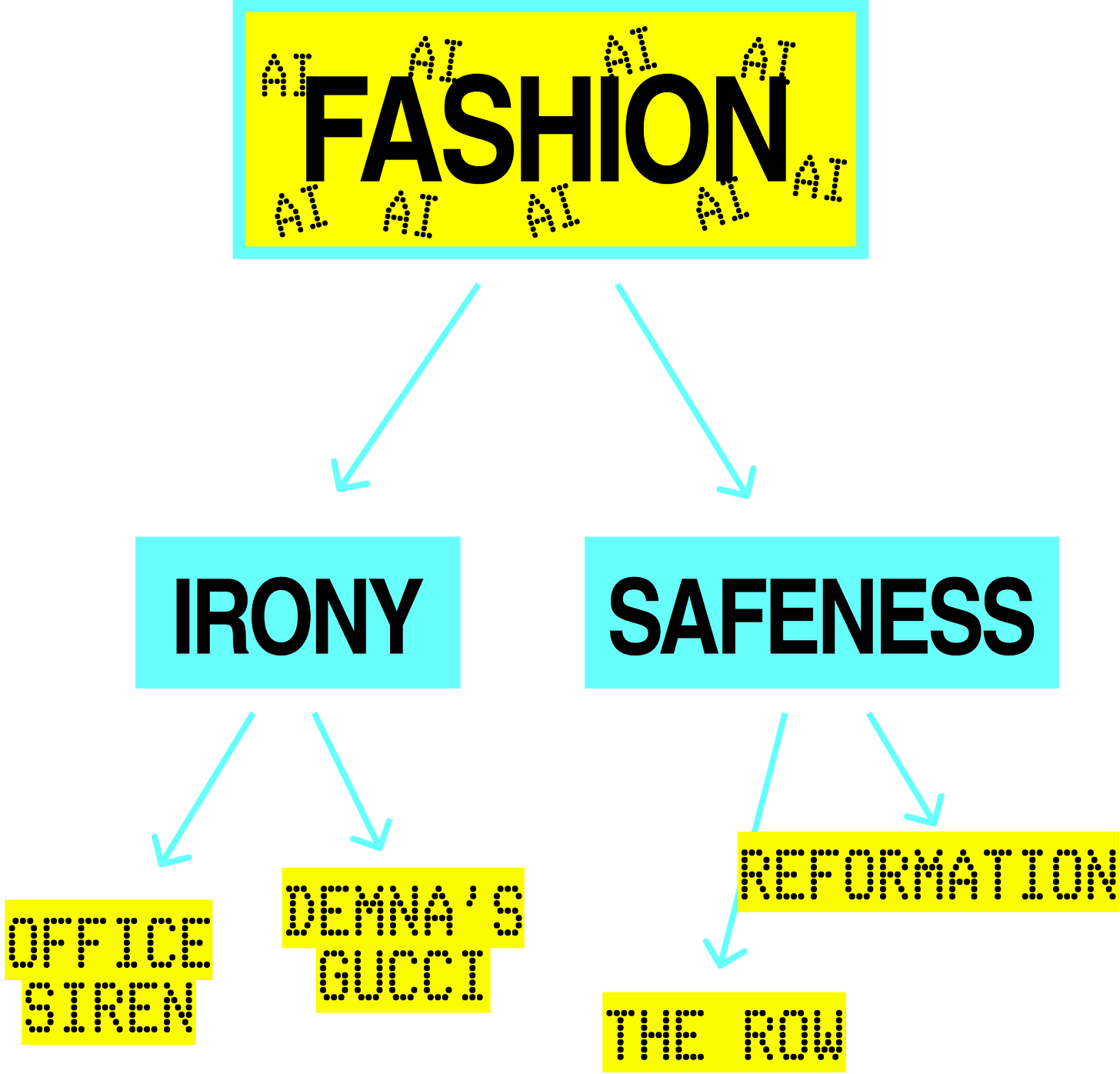To be truly stylish is to be intentional, meaningful. Personal style says something about the person wearing the clothing, not about the manufacturer. The current over-reliance on technology (from AI to the Tiktok algorithm) has created mental laziness. People are ignoring what their aesthetic choices mean, in fact, refusing to make meaningful aesthetic choices entirely. This hands power to the brands and designers, who, in turn, look to the consumer for what to do. We are stuck in an aesthetic groundhogs day of intellectual virtue signalling. Rothfeld’s AI analysis applies to fashion too. The journey to the answers, through research, thought, and trial and error, is what makes style.