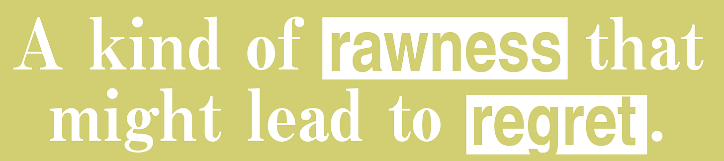 I enjoy these kinds of things. It makes me think about the myriad ways we use art to articulate feelings we might otherwise struggle to. It can be a useful, but exposing tool. The best ones, perhaps selfishly, are the works of art that feel like they’ve been stolen from their maker and put on display with a kind of rawness that might lead to regret.