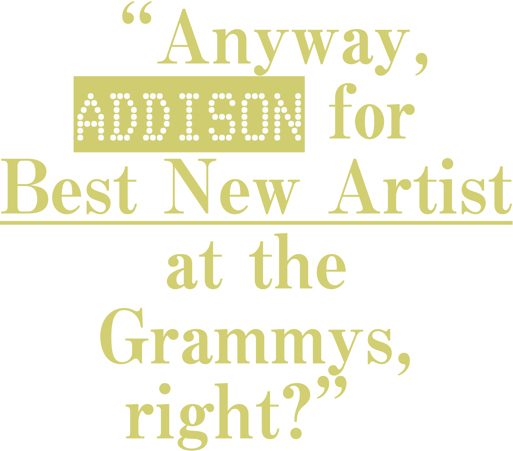 Anyway, Addison for Best New Artist at the Grammys, right?