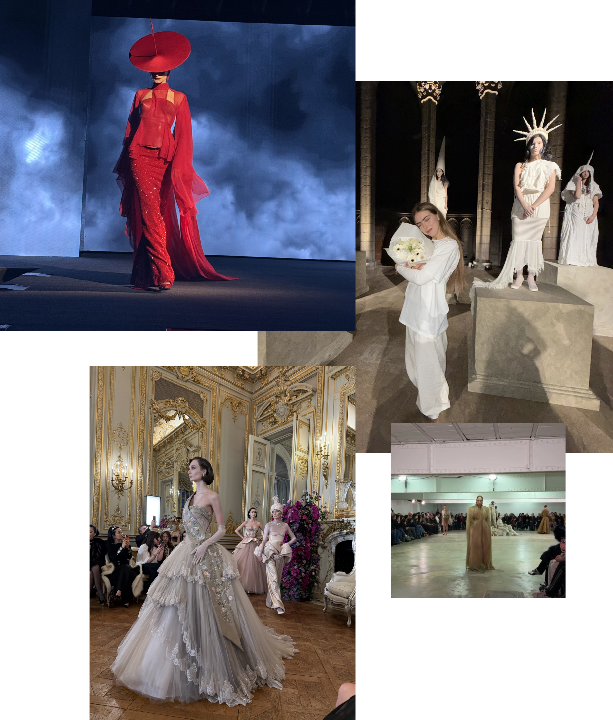Ida Immendorff, a recent CSM grad and costume designer with big dreams and eyebrows that have lore, nailed her debut collection at the Village Reille chapel, staging a static presentation of models poised on plinths like living sculptures. Rendered entirely in white, the looks reimagined costume through sacred history and science fiction, with hand-sculpted forms suspended between faith and fantasy, stone and skin.