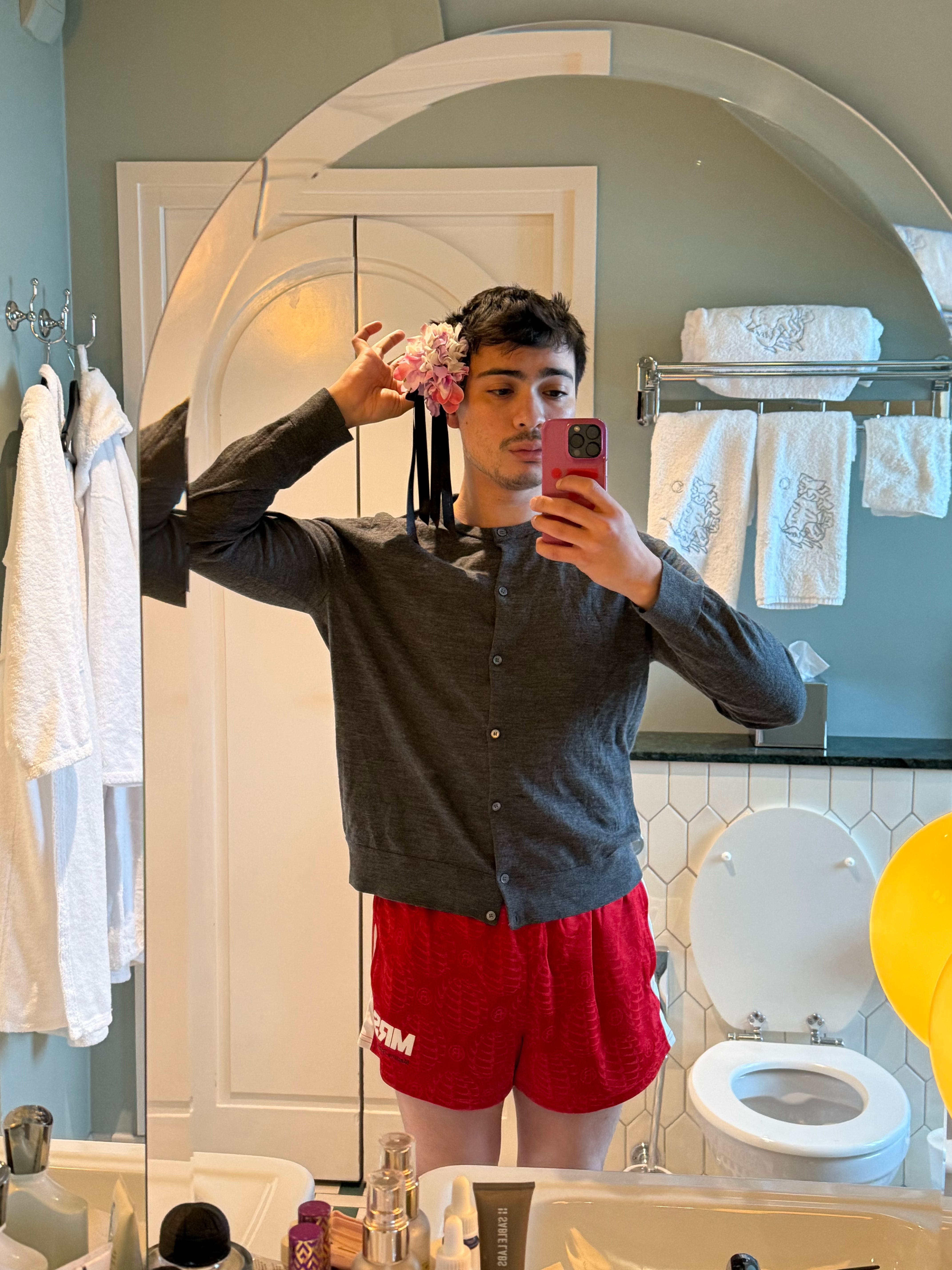 At Dior, I arrived early. This was strategic. Celebrities, as a rule, are never early. They arrive precisely when they mean to, which is always later than everyone else. Rihanna materializing seconds before the show begins sums it up perfectly. Remember when a fan told her she was late and she replied, “No shit”? Inside the mirrored box at the Musée Rodin, the walls and floor reflected endlessly, while above us the ceiling bloomed with fresh florals. It felt like standing inside a jewel box left open to the garden. The invitation had offered a clue all along: A single floral element, modest and cryptic, waiting to make sense later.