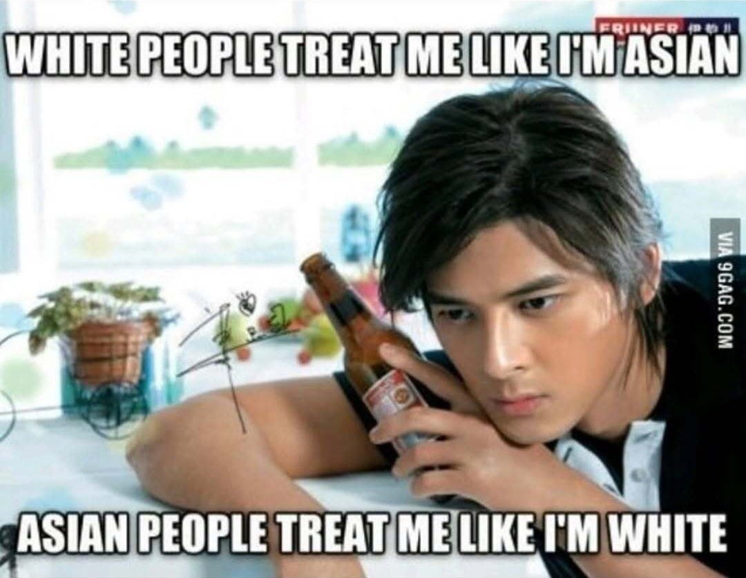 Remember that meme? “White people treat me like I’m Asian, Asian people treat me like I’m white.” Not no.