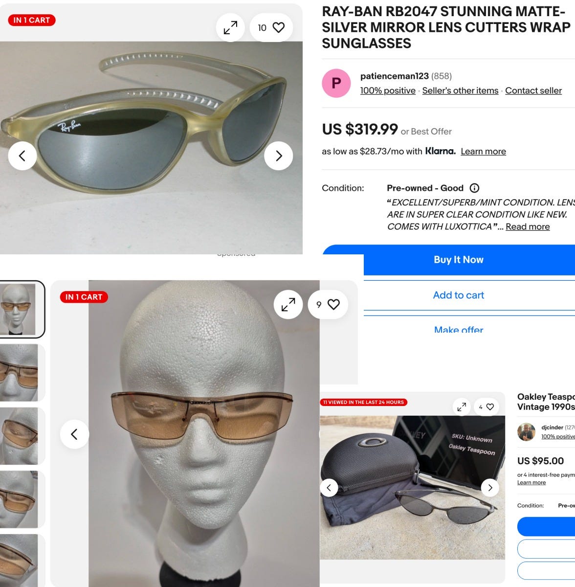 My boyfriend Ben, an eBay obsessive who spends half of his allotted screen time sending me photos of boots that all look the same, rounded up some great sunglass options for these bright winter days: