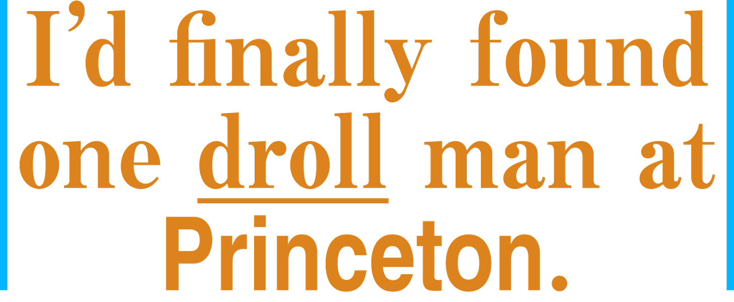 “Because I know myself, and I am a writer, not an editor. I need other writers, intellectuals, sardonic back-and-forth, that sort of thing. Princeton’s not it. John O’Hara lived here, is buried around the corner, and the University wanted nothing to do with him. There’s not a droll person in all of Princeton.”