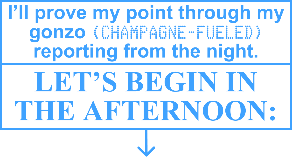 8:30: I have seen enough montages in 10 minutes to make this feel like a flashback to the year I went to 60 bat mitzvahs. Someone tells me “the last video editing job in London is editing montages for the BFC.”