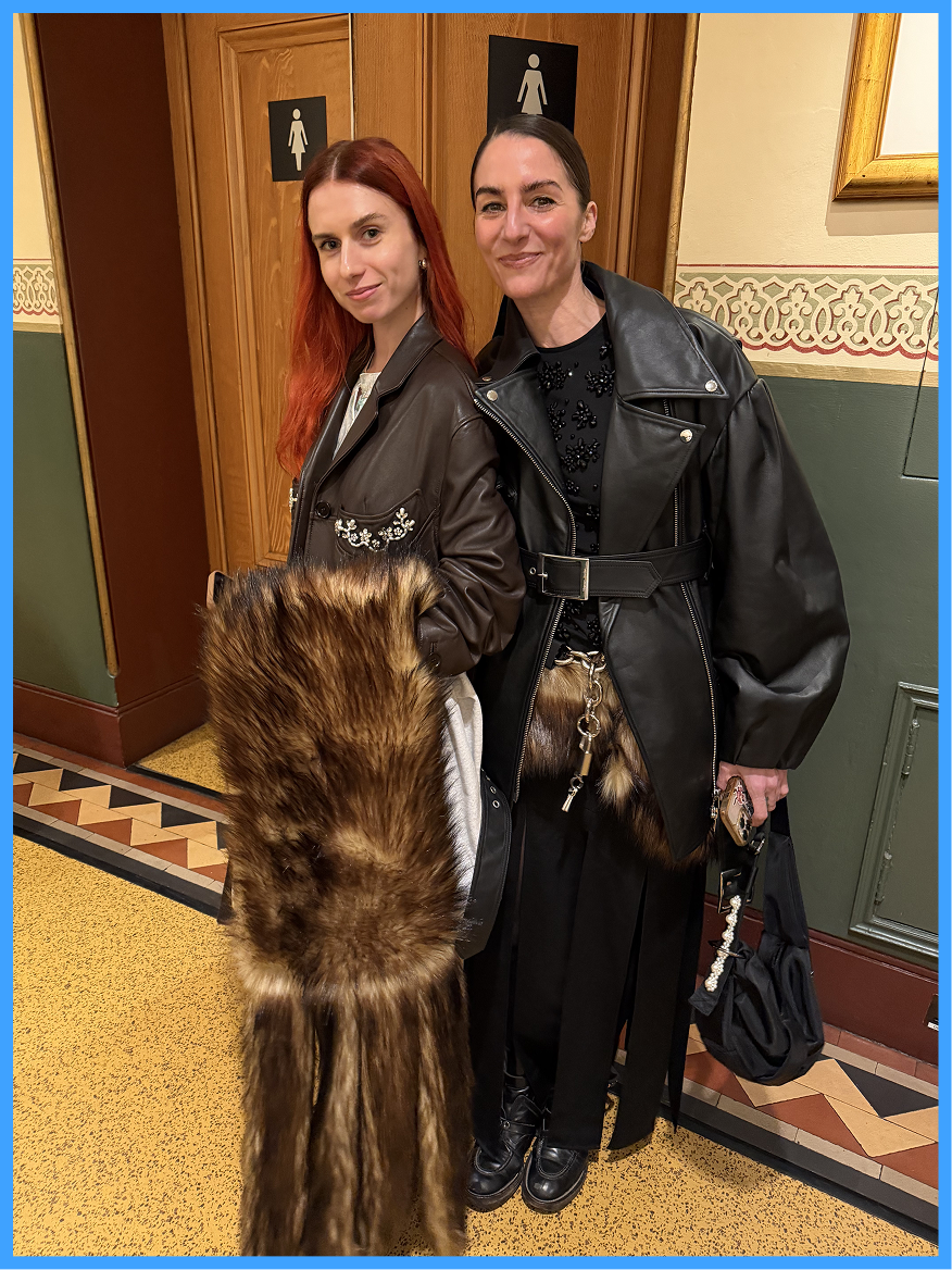 8:01: I am inside and immediately run into Isabella and Celestine by the bathroom. They are the two best dressed women in England. Today they’re wearing Simone Rocha.