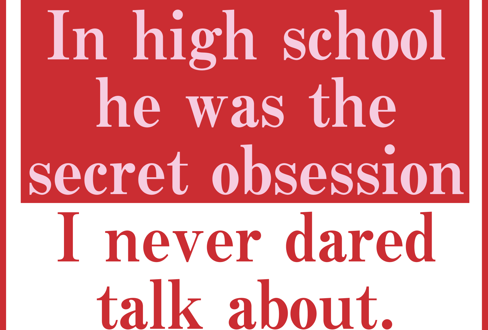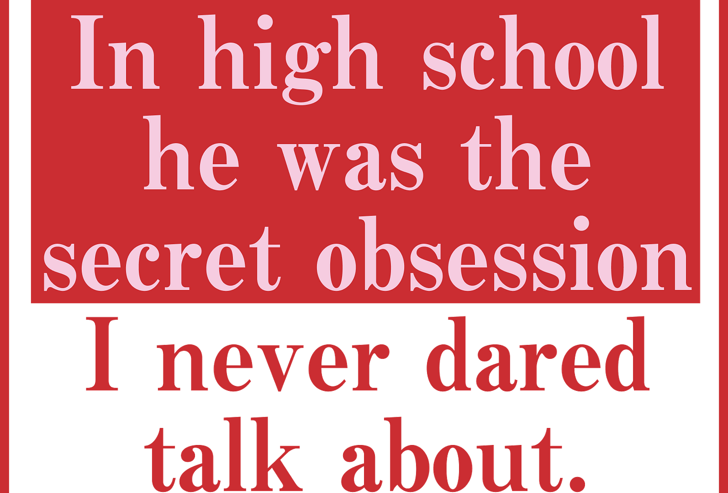 At school, I rolled my eyes when they’d discuss the concert. But privately, I was fantasising about Ricky coming to my hometown just as much as they were. At night I’d have dreams about meeting him, becoming pals, sharing secrets. The night of the concert, I imagined sneaking downtown to the after-party and casually, coolly meeting him on the dance floor, seducing him, telling him I wouldn’t tell anyone about our secret relationship because I didn’t want the guys on my high school football team to find out about me either.