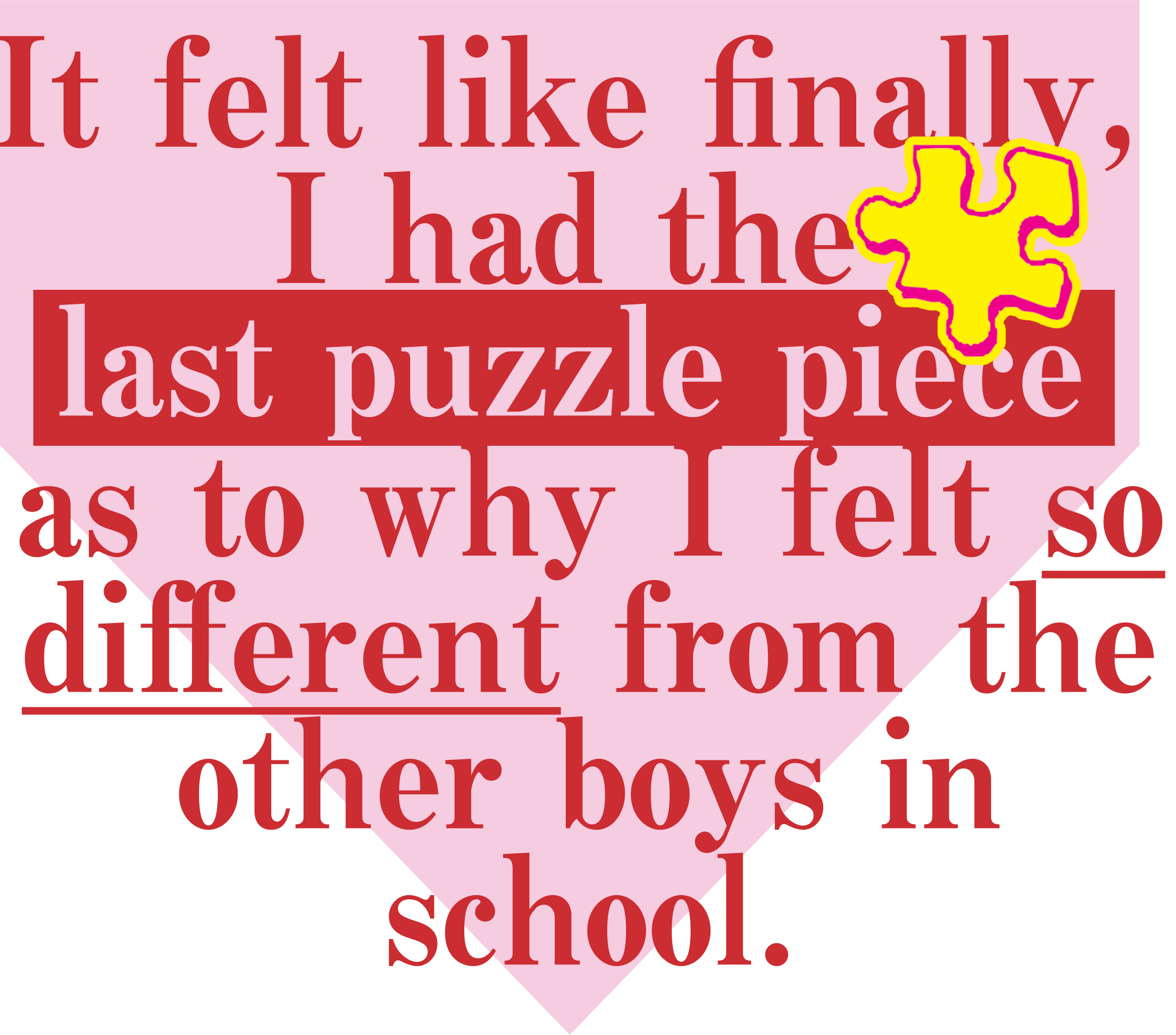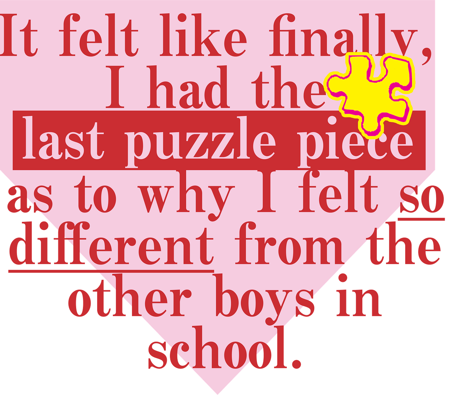 Finally, I had the last puzzle piece as to why I felt so different from the other boys in school.