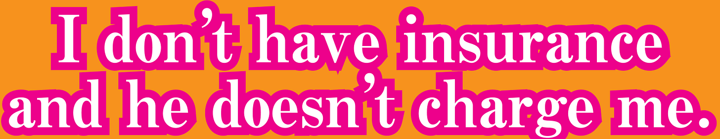 My doctor asks me what my job is, and I say that I’m a writer, and I get ready to obfuscate the fact that I write about my own life, because I suddenly feel the presence of a strange, pressing worry that he’ll think I’m only at the hospital to write about it. But he doesn’t ask about it at all, which sort of makes me wish he would.