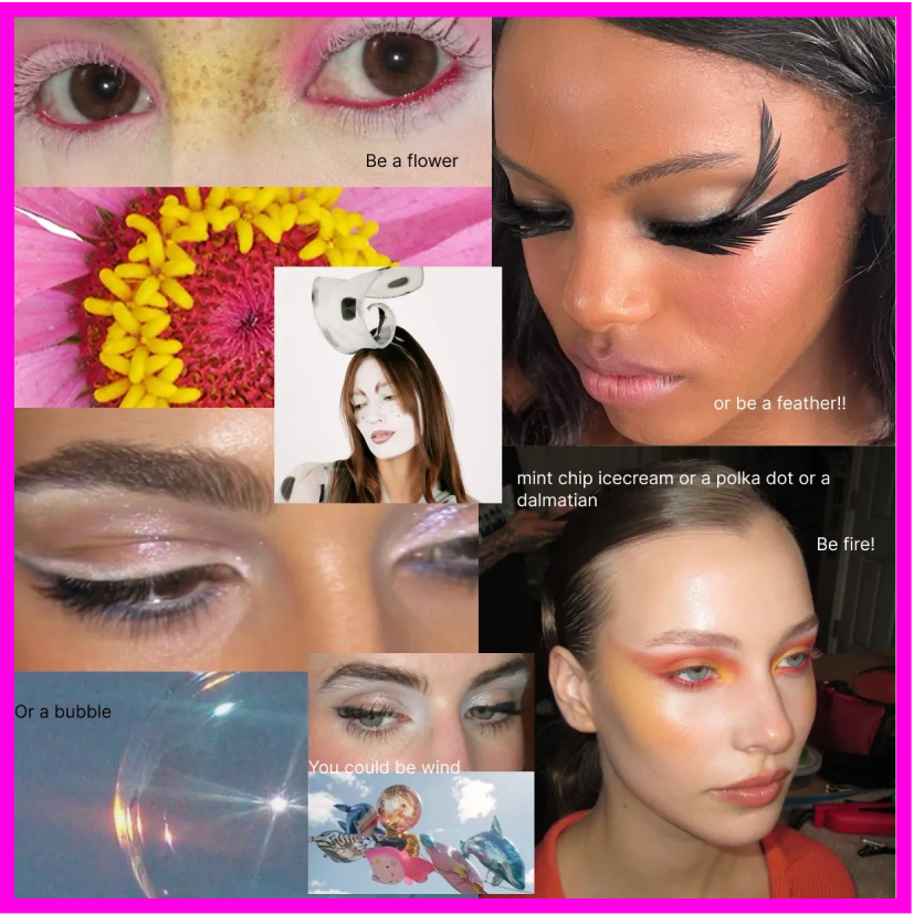 The perfect costume (I’m assuming that if you’re still reading this you’re someone who doesn’t want to be a Spirit Halloween Ladybug) is a delicate chemical reaction. It’s easy to get bogged down by individual compounds—is it smart enough, funny enough, spooky enough, sexy enough, will people know who you are? More important than the optimal combination of elements—the only thing separating the chaff from the wheat—is that which cannot be bought: COMMITMENT. Slap a reference photo on as your screensaver so people know who you are. In fact, you could be anything (a breeze in springtime) and with the right amount of steeliness and ingenuity (makeup, a cool hat) it will be a triumph. For the perfect last minute nonchalant costume, makeup artist Izzie had curated her thoughts.